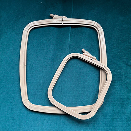 Nurge high-quality Square (rectangular) ABS Plastic Embroidery Hoops are perfect for most styles of needlecraft, embroidery & cross stitch. They make it easy to sew into corners. There is a notch in one hoop that fits into a groove on the other that keeps the fabric firm when sewing.