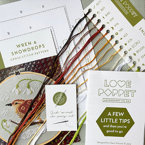 I haven't done cross stitch for many years, but as soon as I saw the wren kit, I just had to buy it as wrens are my favourite birds. The kit is beautifully packaged and the branding is lovely. The chart is very clear, and easy to follow, and there seems to be a generous amount of threads included. I would highly recommend this kit and this maker, and I'll be looking to order from her again in the future.