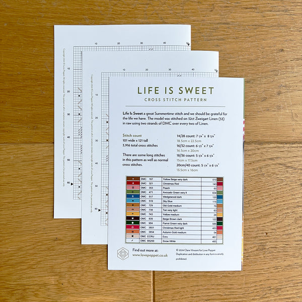 The pattern is printed both in colour and b/w, and comes within a cello bag.