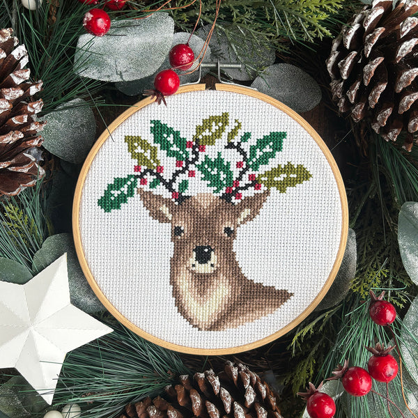 A wonderful festive Reindeer cross stitch kit perfect as a gift, or even gift yourself with a lovely xmas craft for you to do.