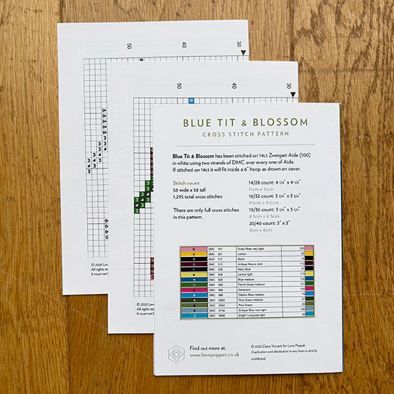 The pattern is printed in colour and b/w and comes within a cello bag.