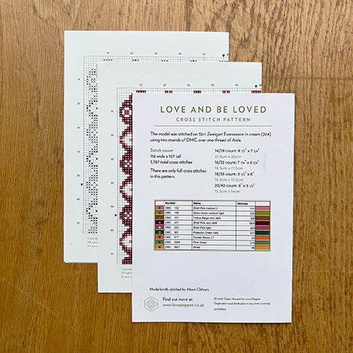 The model was stitched on 32ct Zweigart Evenweave in cream (264) using two strands of DMC over two threads of Evenweave.