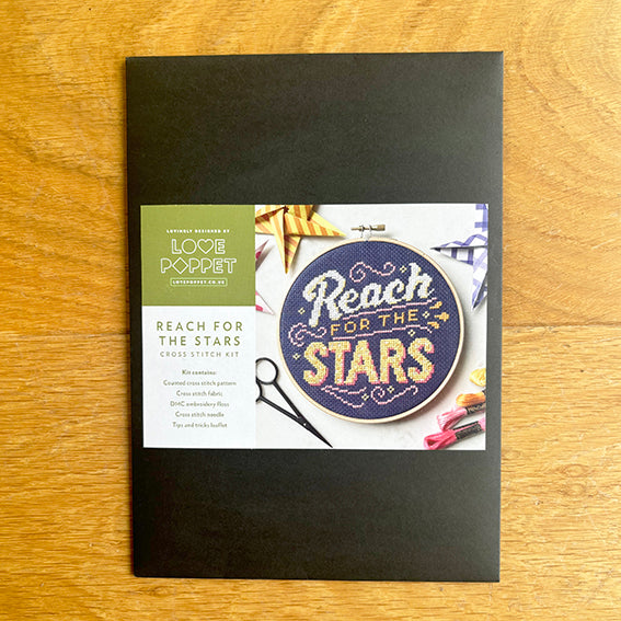 The colours have been specially selected to 'pop' against navy blue Aida, or even black. If you'd like to stitch this design on white or a pale coloured Aida, then you may want to swap out the white for the 'Reach' text.